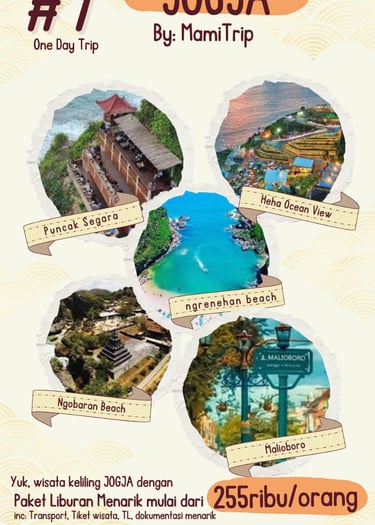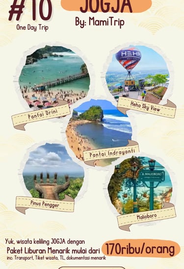 Paket Jogja Seru One Day Trip cocok untuk kamu yang ingin menikmati Jogja dalam sehari tanpa capek atur rute sendiri. Dalam perjalanan singkat ini, kamu tetap bisa mendapatkan pengalaman lengkap: wisata ikonik, destinasi foto favorit, dan waktu yang pas untuk menikmati suasana Jogja.