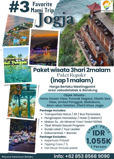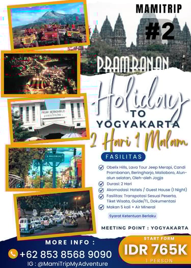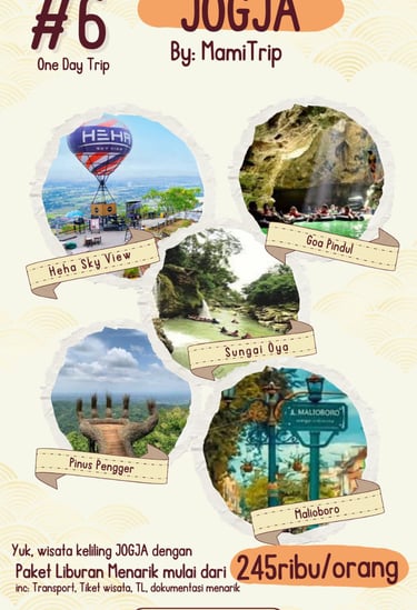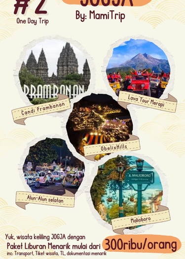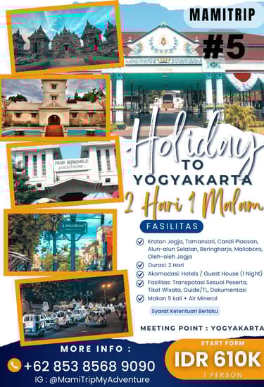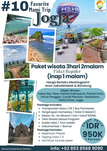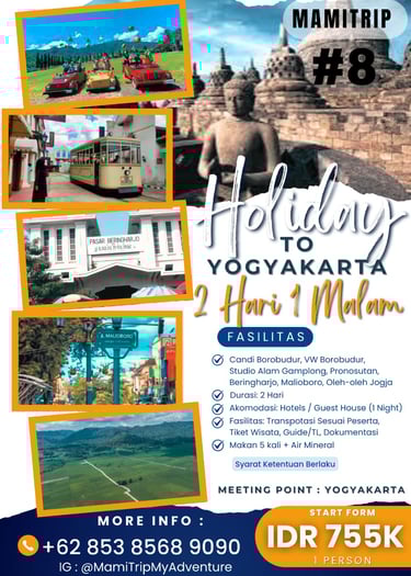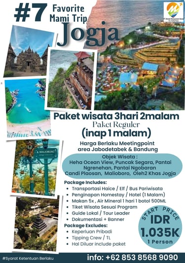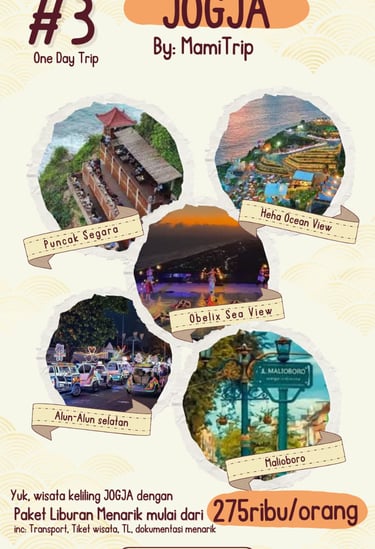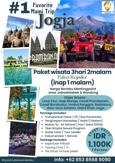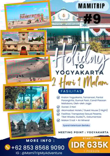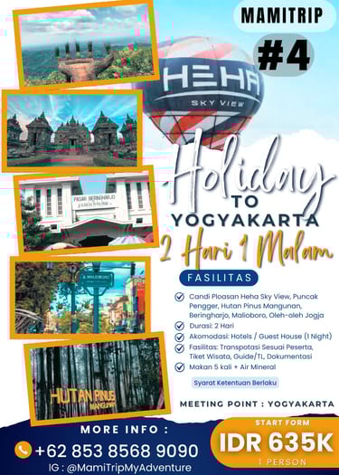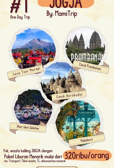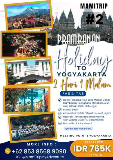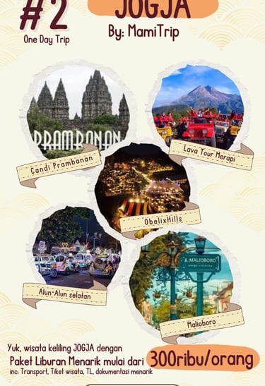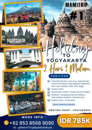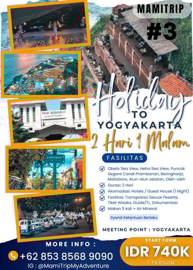 Paket Jogja Seru 2 Hari 1 Malam adalah paket paling pas untuk weekend getaway. Kamu bisa merasakan kombinasi wisata budaya, landmark terkenal, dan spot hits Jogja tanpa harus buru-buru.