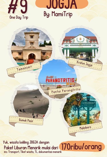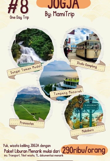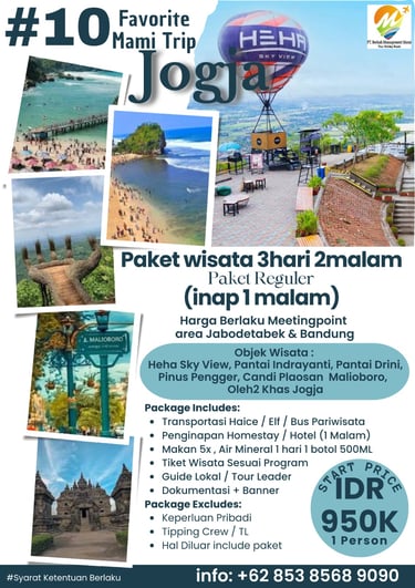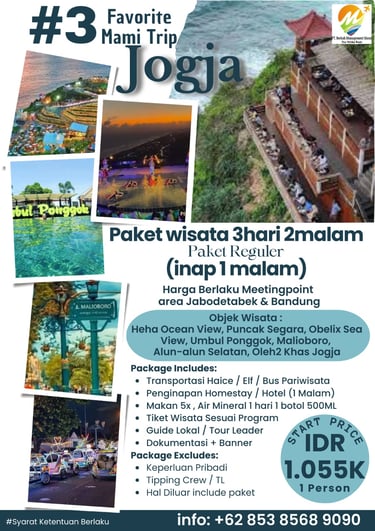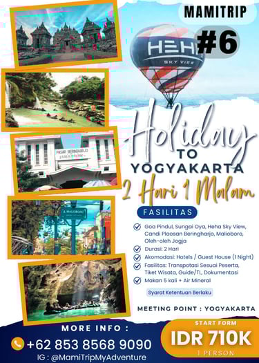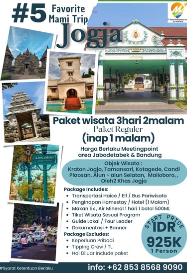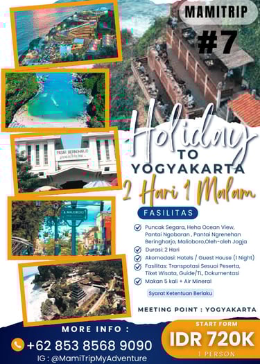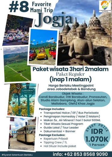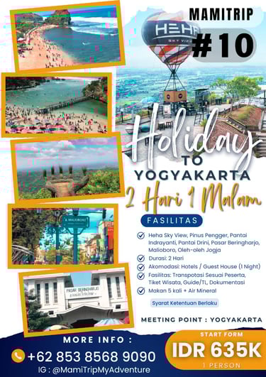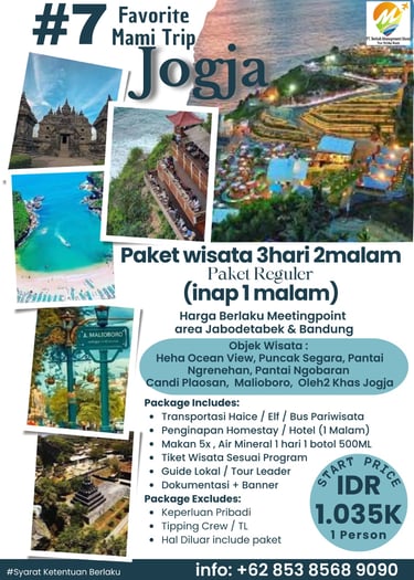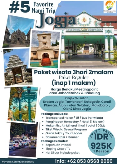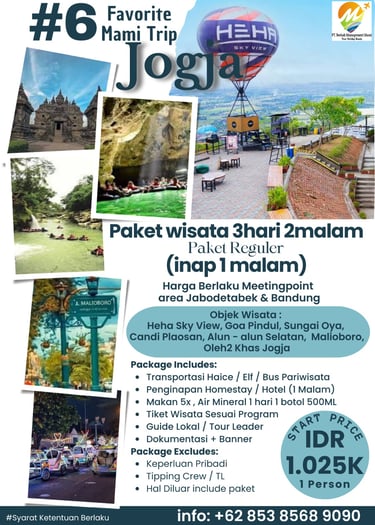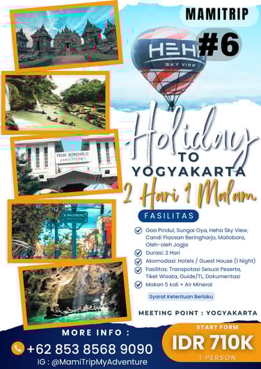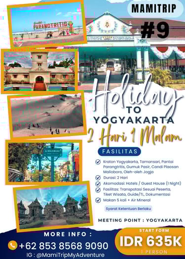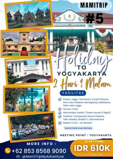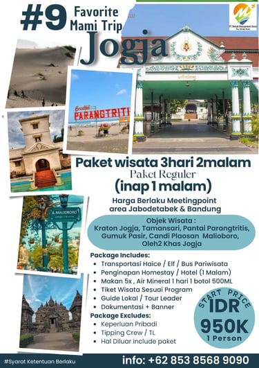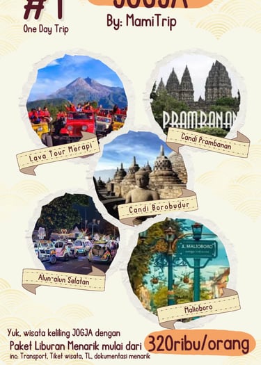 Paket Jogja Seru 2 Hari 1 Malam adalah paket paling pas untuk weekend getaway. Kamu bisa merasakan kombinasi wisata budaya, landmark terkenal, dan spot hits Jogja tanpa harus buru-buru.